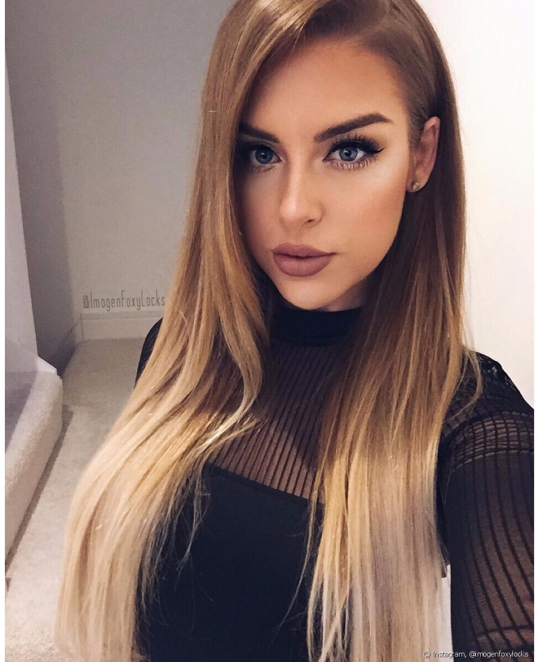 Description: Her body is tall and thin, standing at 5' 7". Her hair is a medium length blonde-brown ombré and her eyes are bright blue.